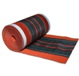 Ridge belt type V-roll Mat (technical material). Permeable geotextile, attached to the aluminum sheet by butyl adhesive (thermo-reacting). Two rows sewn with polyester thread. A wide strip of foil (20 mm) protects the adhesive. The high viscosity of the adhesive, roofers check by gluing sample to dry hands.